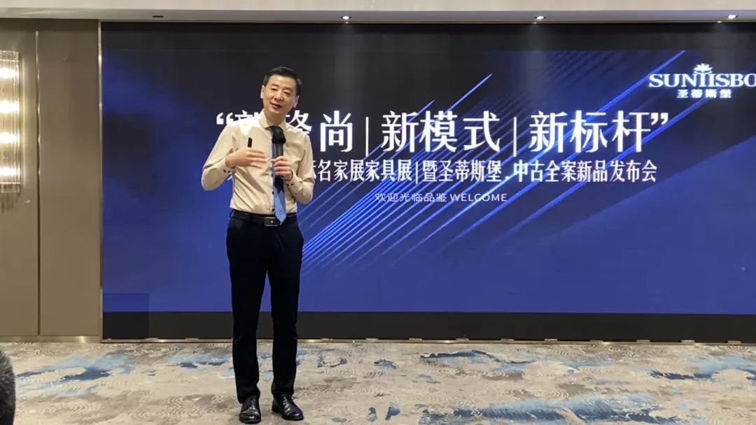 接下来,米兰体育工业营销部副经理吴天喜先生为我们重磅揭晓了2025春季新品中古全案系列和新古典全案升级新品,他从选材、设计、风格、工艺等方面进行了全面的讲解,并提到此次中古新品的全案模式是以更具设计感的创新方式,给予消费者整体性的体验感升级,助力大家在激烈的市场竞争中,突显差异化的优势,实现业绩的飞跃式增长。